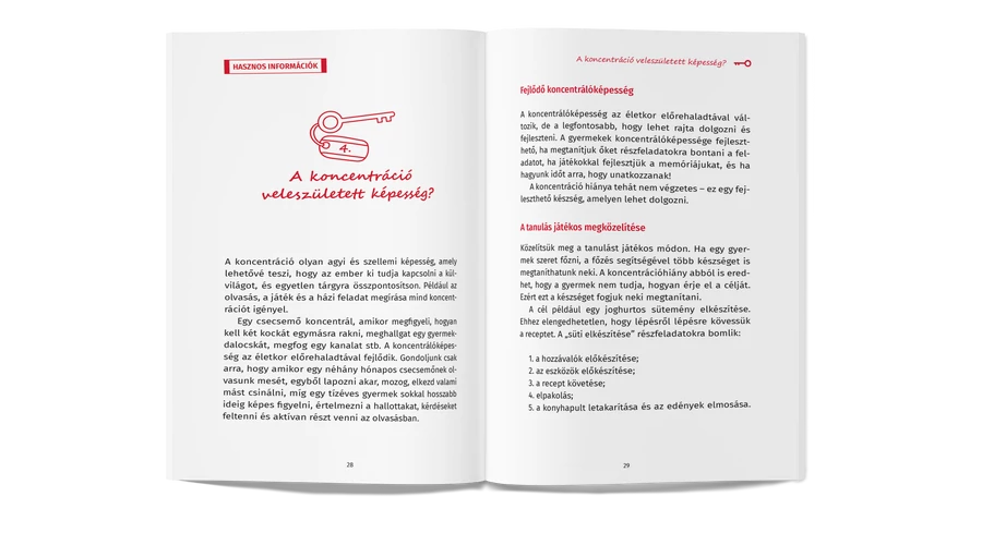 Ebben a gyakorlati útmutatóban, melyet egy kisgyermekkorra szakosodott óvodapedagógus írt, 50 KONKRÉT KULCS található, amelyek segítségével megértheted a koncentráció mechanizmusát, azonosíthatod, hogy mi akadályozza azt, valamint támogathatod a gyermekedet a koncentráció fejlesztésében. A kulcsokat három kategóriába soroltuk: hasznos információk, tanácsok és gyakorlati tippek – egyszerű, szórakoztató és közérthető módon.